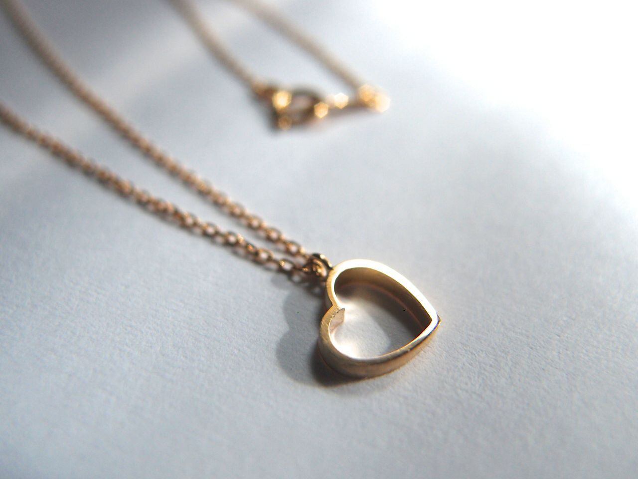 ハートのフレームで立ち上がりのあるネックレスを作りました。