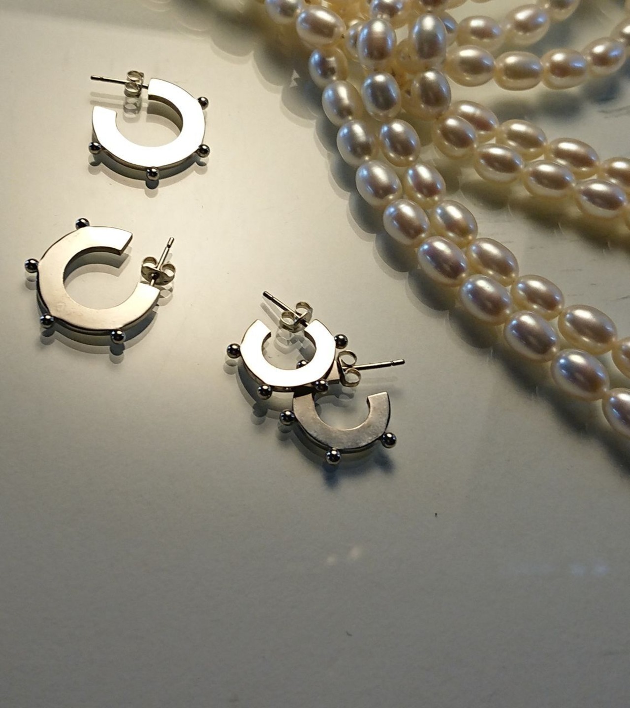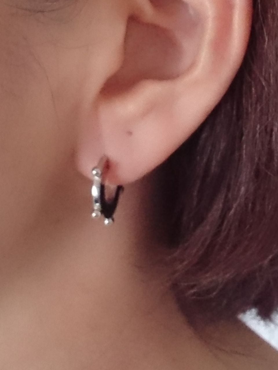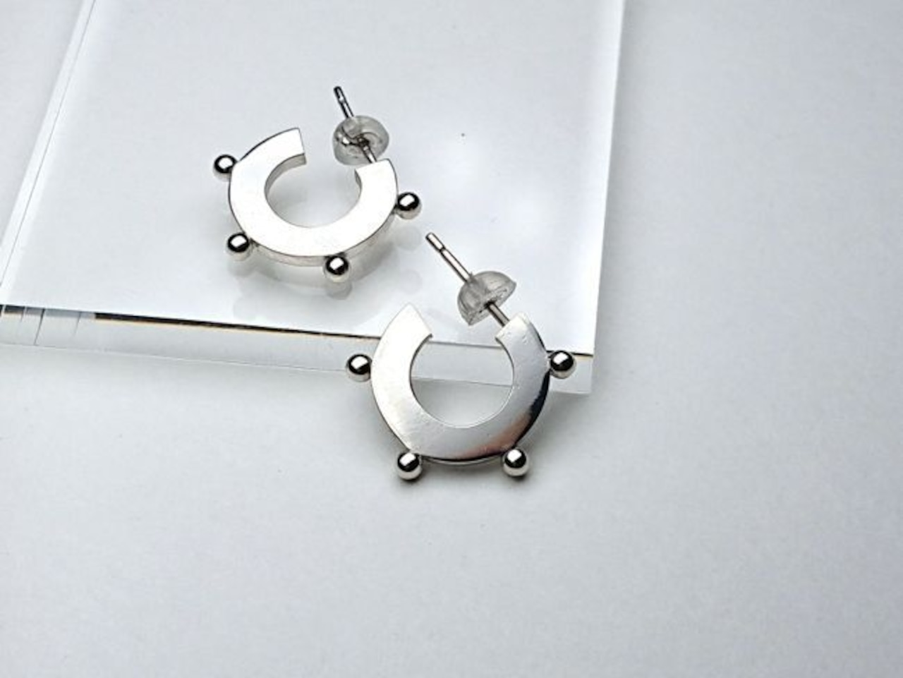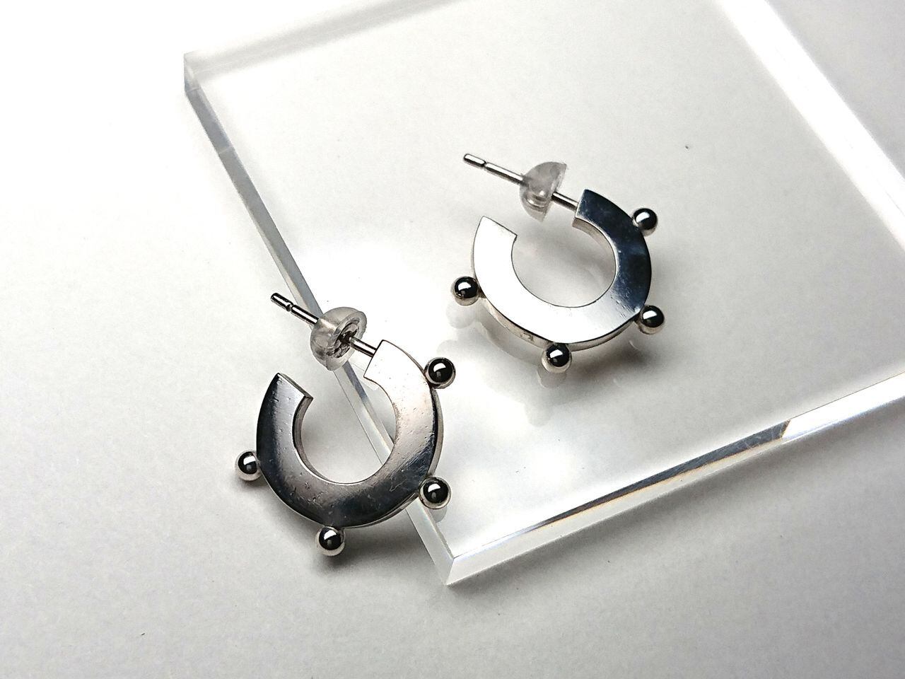 板状のシルバーにボールを付けたポップな雰囲気のピアス。