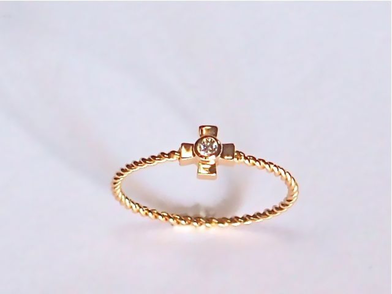 K18 ダイヤ付きクロス ツイストリング