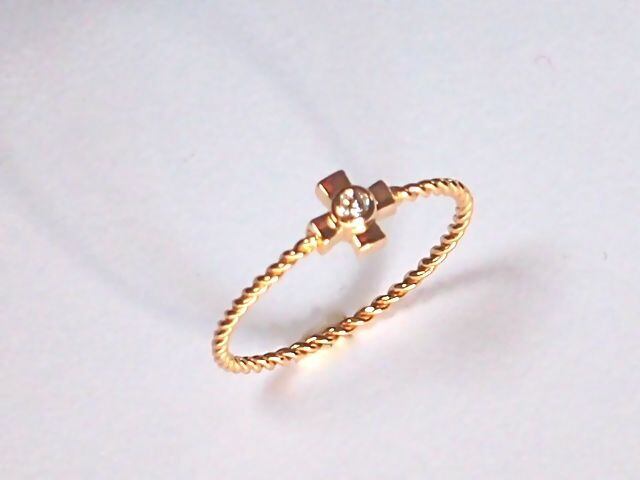 華奢なツイストのリングにダイヤを付けたデザインは、シックでどこかノスタルジックな雰囲気があります。