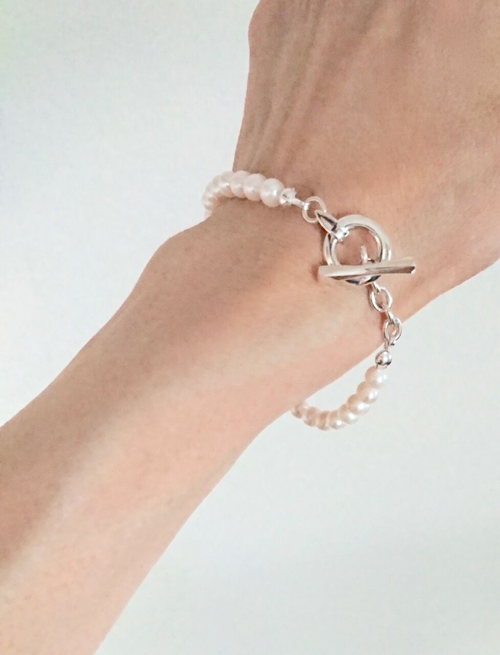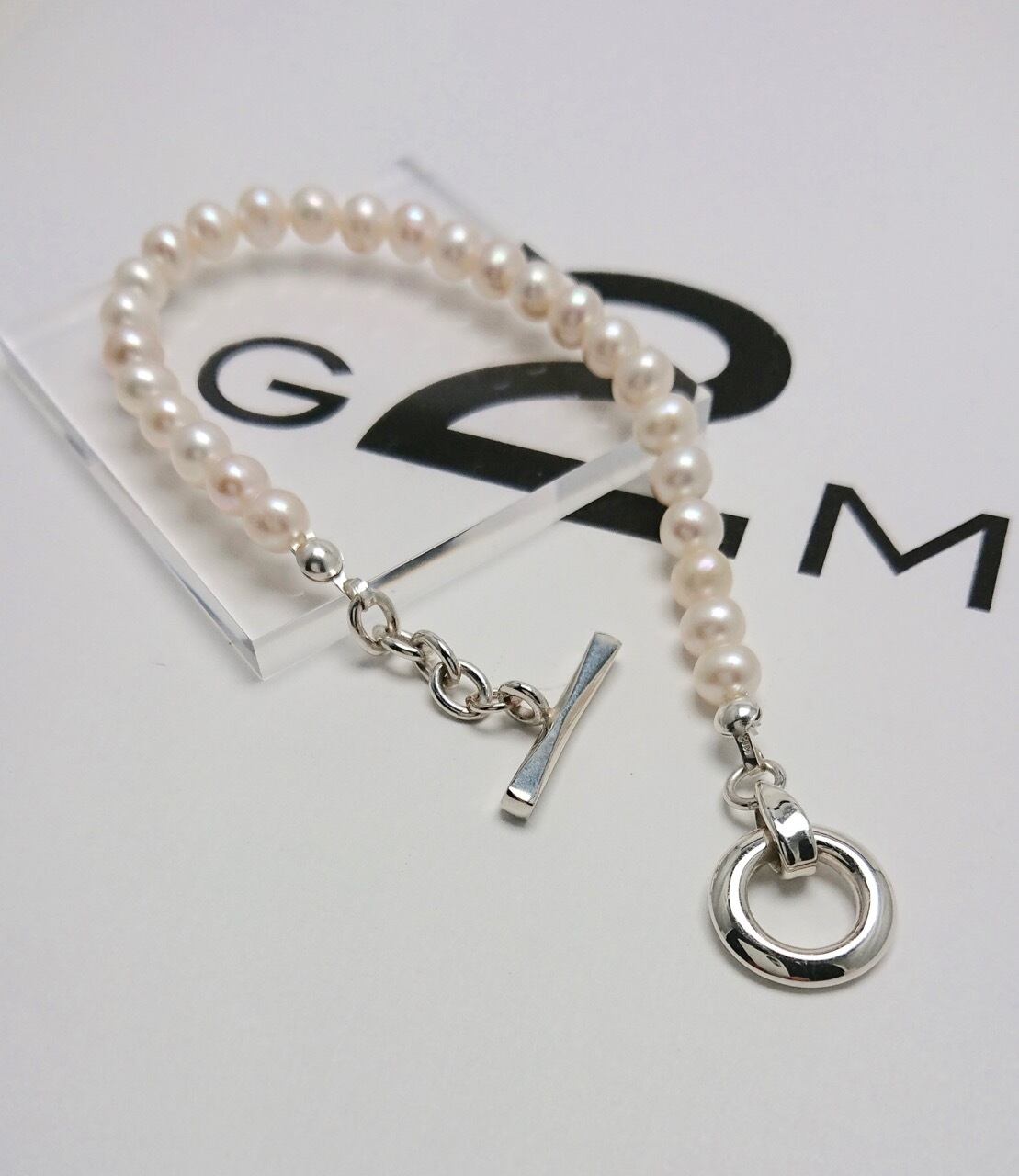 様々なスタイルジャンルに幅広くコーディネートできて、エレガントな雰囲気のあるブレスレットです。