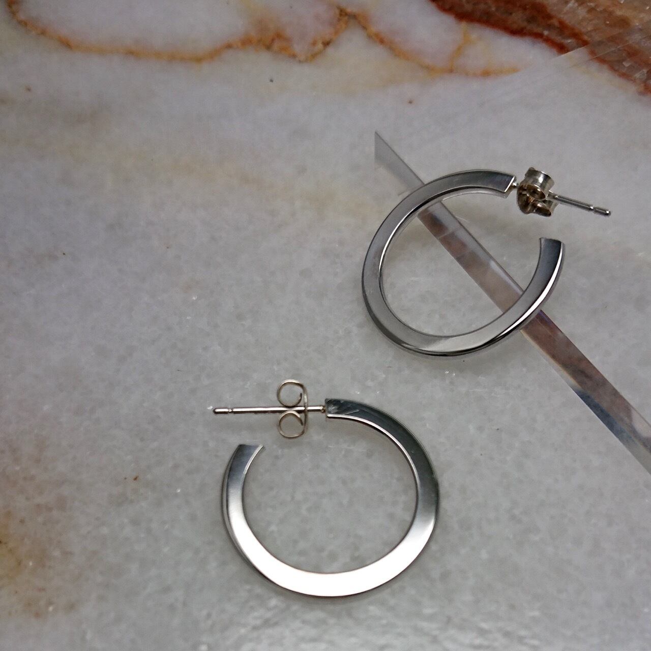 普段使いはもちろん、お出掛けにと活躍する程よい大きさのフープピアス。