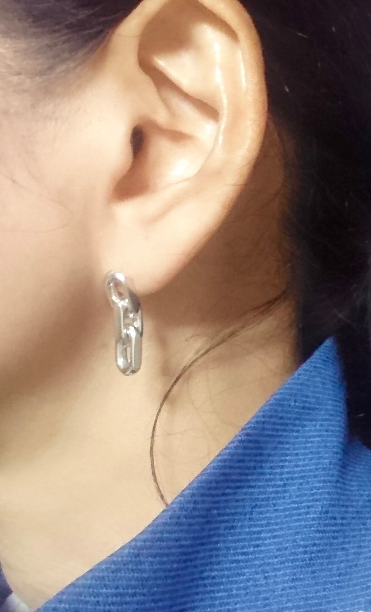 原型から作ったパーツを一つずつ繋いだ、チェーンピアスです。